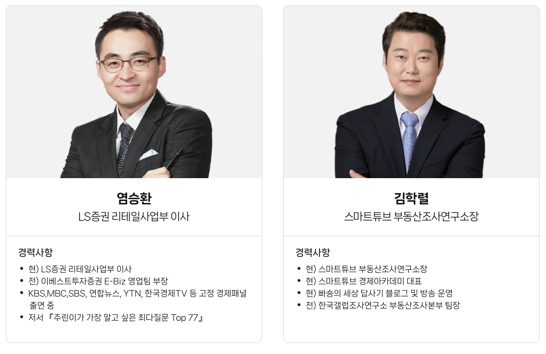 김용섭 소장과 유동원본부장, 그리고 많이 아시는 염승환이사와 김학렬 빠숑 tv 소장님. 아무래도 유튜브에서 낯이 익은 연사들이 있어서 바로 신청할 수 있지 않았나 싶어요.