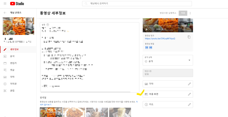 - 유튜브 스튜디오에서 최종화면 추가: